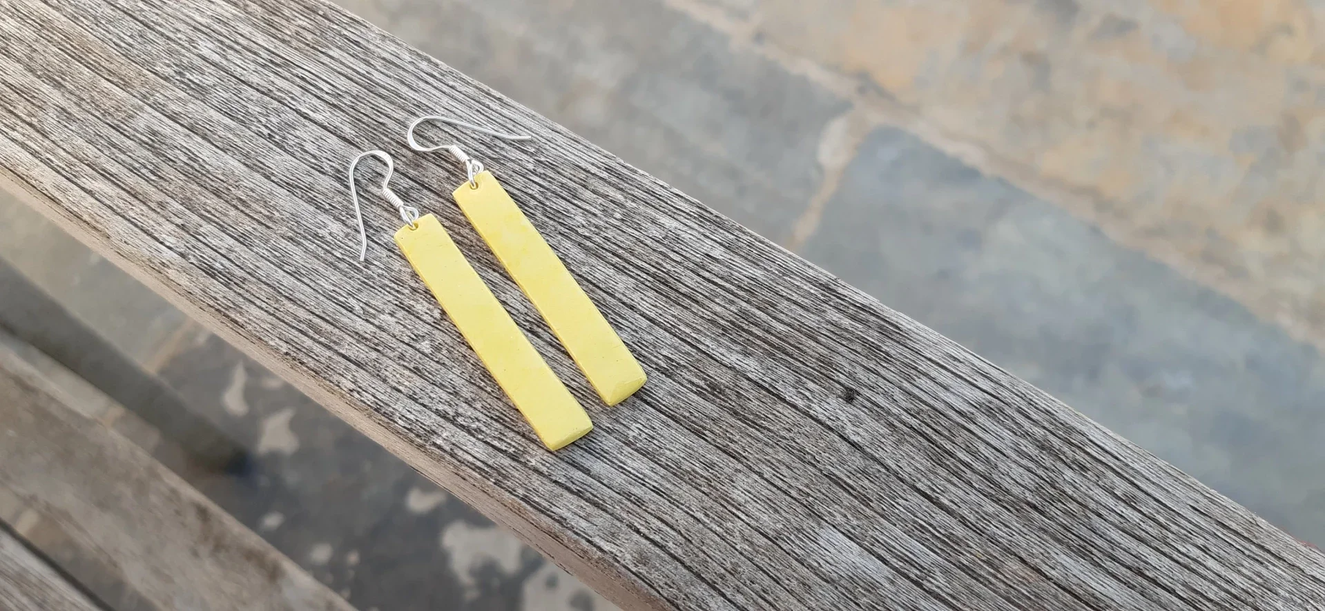 De lichtgele parels werden door mezelf gemaakt uit ingekleurde witte porseleinklei met een geel pigment.