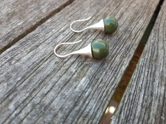 De groene parels werden aangebracht aan sterling zilveren oorbellen, echt zilver, AG925