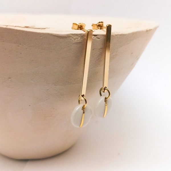 De parels worden samengebracht met vermeil gouden oorbellen. (= Sterling zilveren sieraden onderdelen (eerste gehalte zilver 925) verguld met twee lagen 24 karaats goud.)