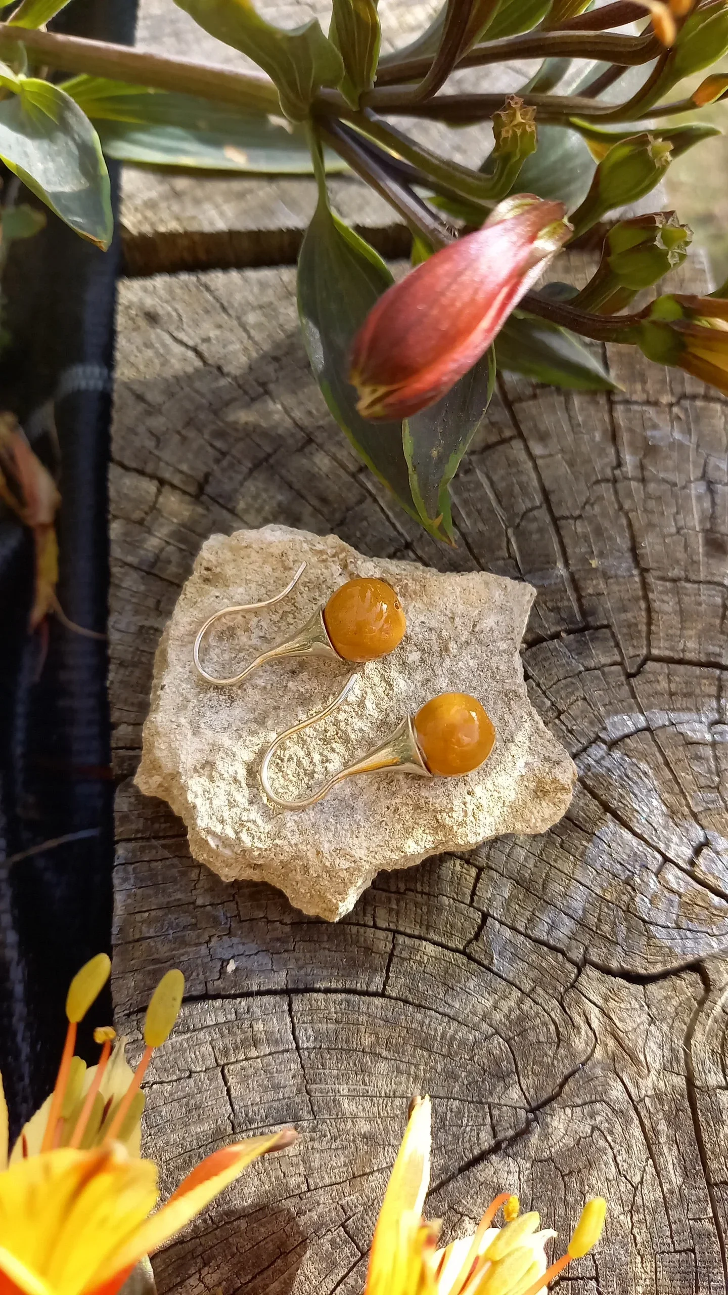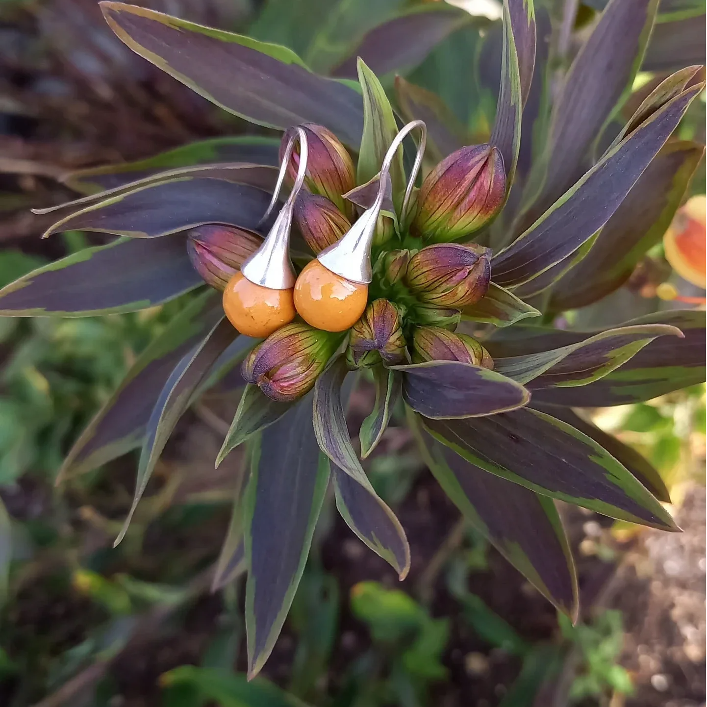Oker geel porselein - zilveren (AG925) of vermeil gouden oorhaak
