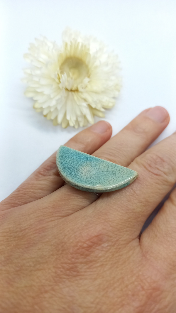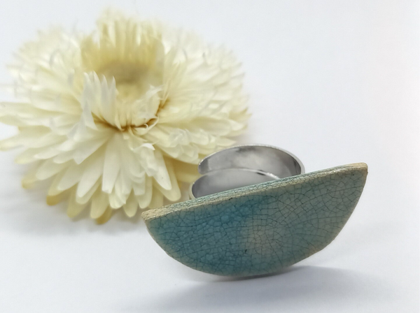 Halve maan ring : Blauwe craclé raku verstelbare ring
