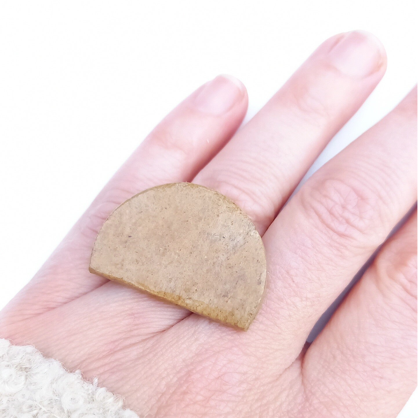 De parel werd gemaakt uit ingekleurde porseleinklei.