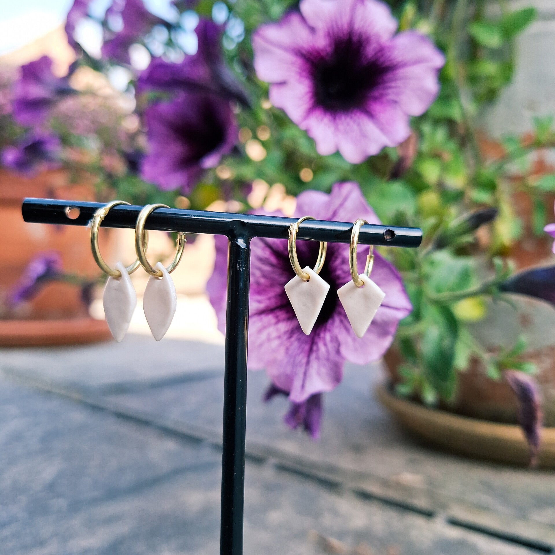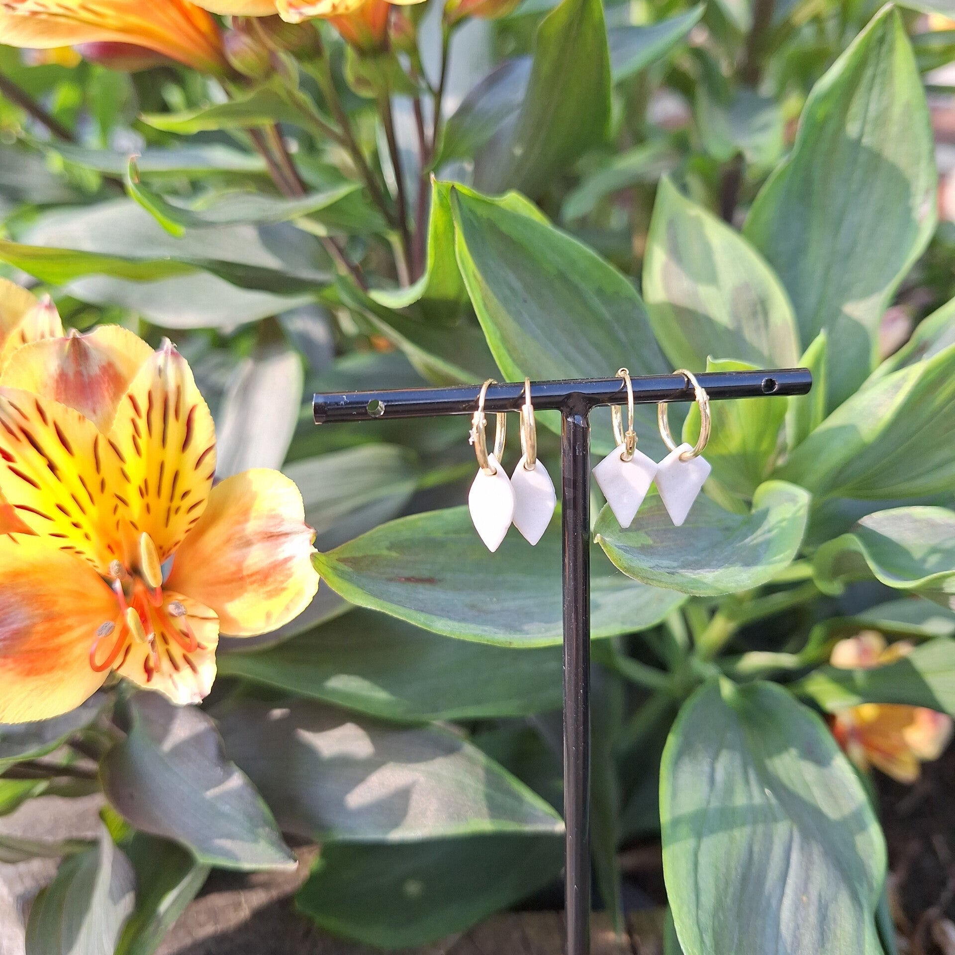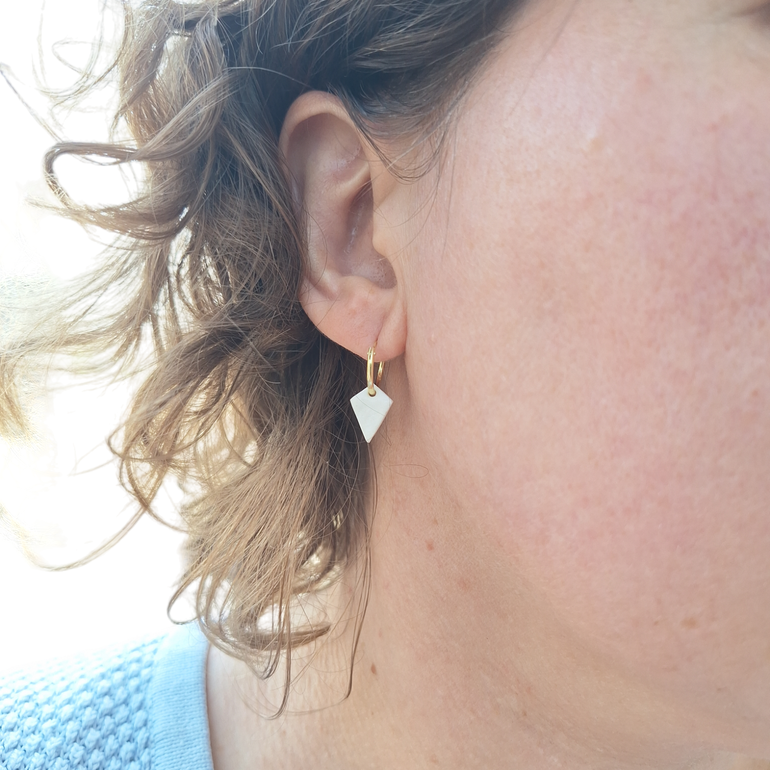 Kleine goldfilled ooringen met witte porseleinparel