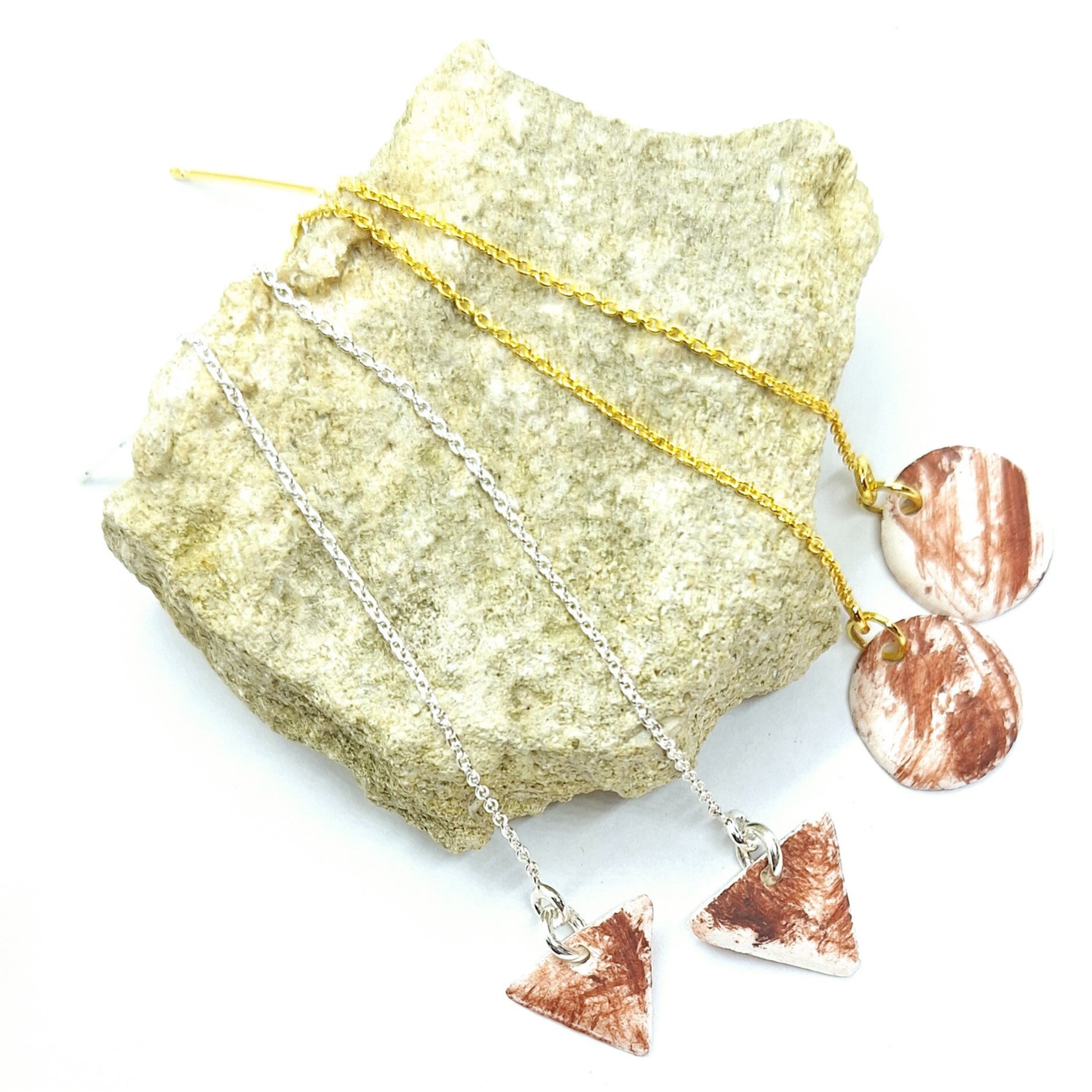 De roodbruine parels werden door mezelf gemaakt en samengebracht met RVS (chirurgisch staal) zilver ronde oorstekers. Ontdek hier meer over mijn allergievriendelijke materialen