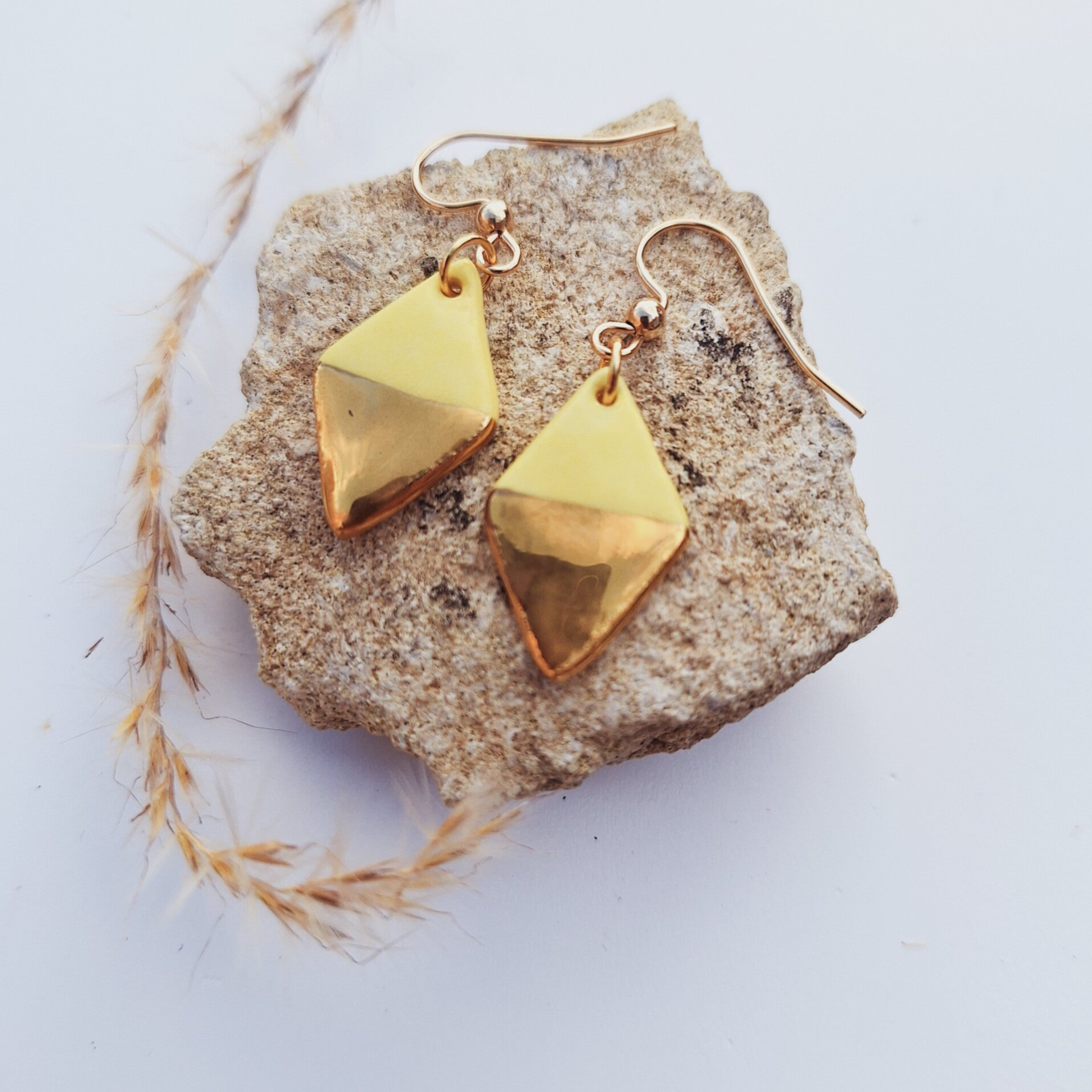 Geel gouden ruitvormige porselein keramiek oorbellen - vermeil goud