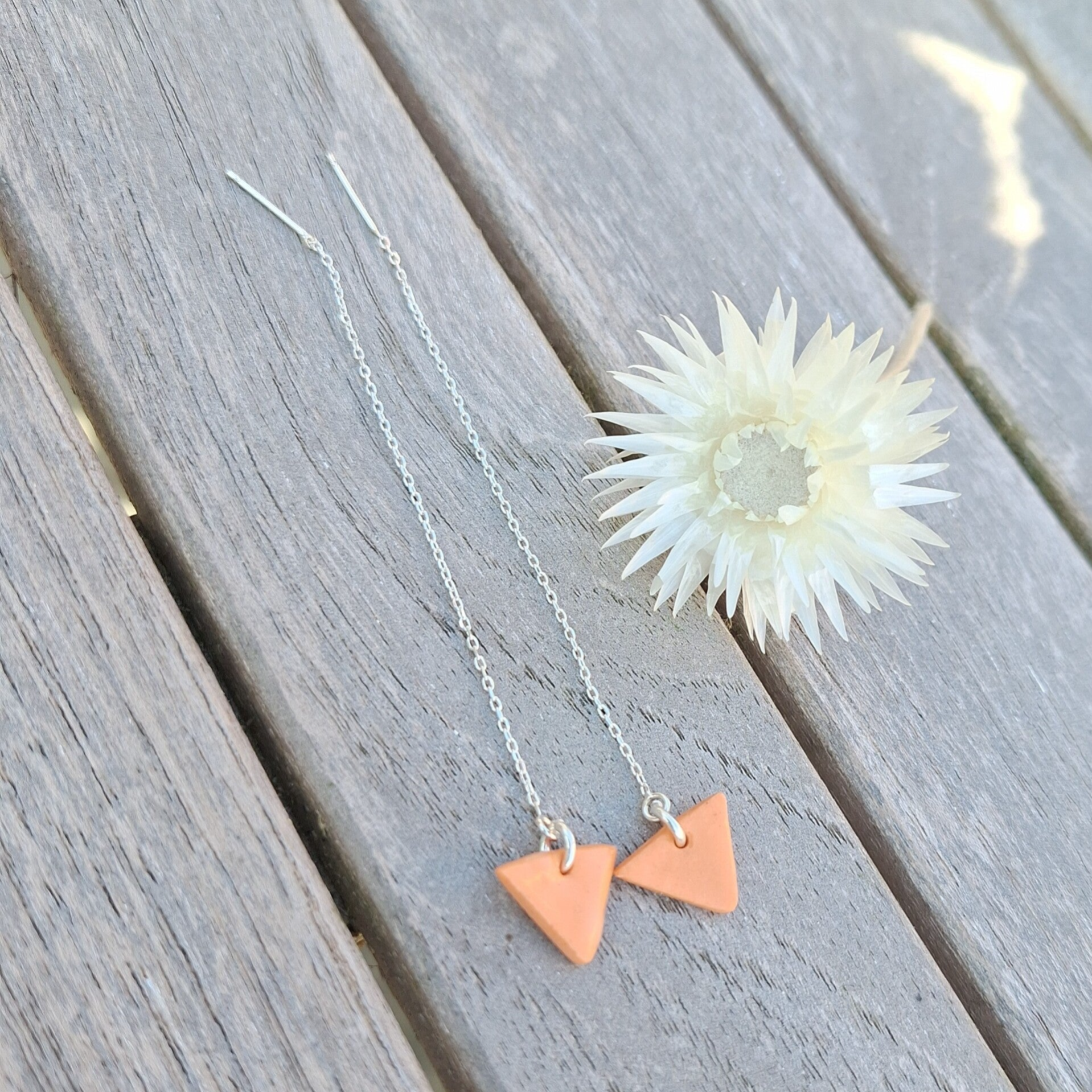Oranje driehoek oorbelketting - sterling silver