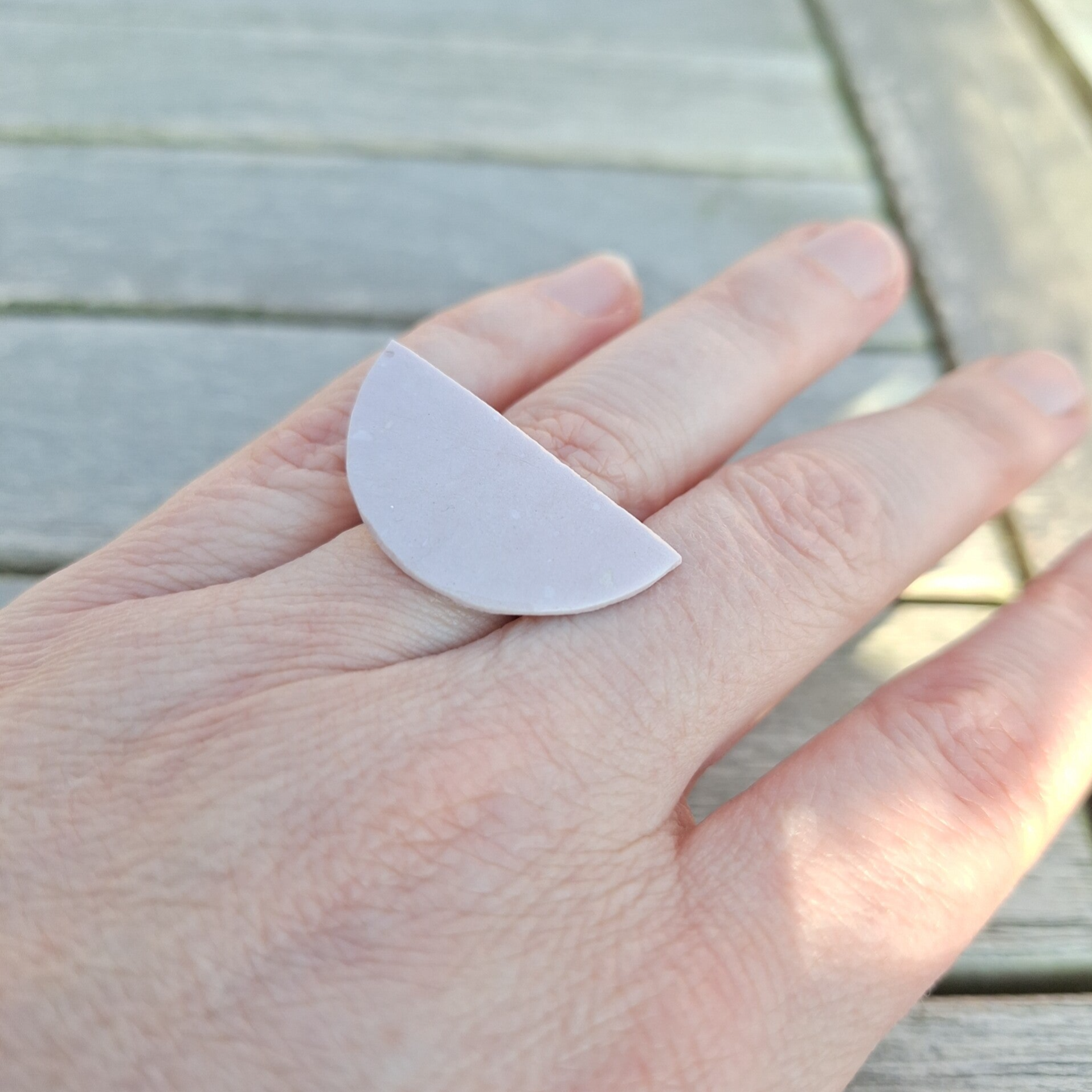 De parel is door mezelf gemaakt uit ingekleurde porseleinklei en bewerkt met een glanzend glazuur. De parel werd gebakken op 1240°C om het onbreekbaar te maken bij een normale val.