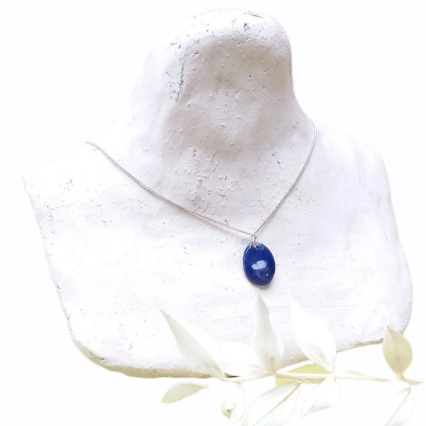 De kobalt blauwe ovale parel werd handgemaakt uit ingekleurde porseleinklei.Het werd gebakken op 1240°C om het stevig te maken.Inclusief echte zilveren, AG925 halsketting van 44cm