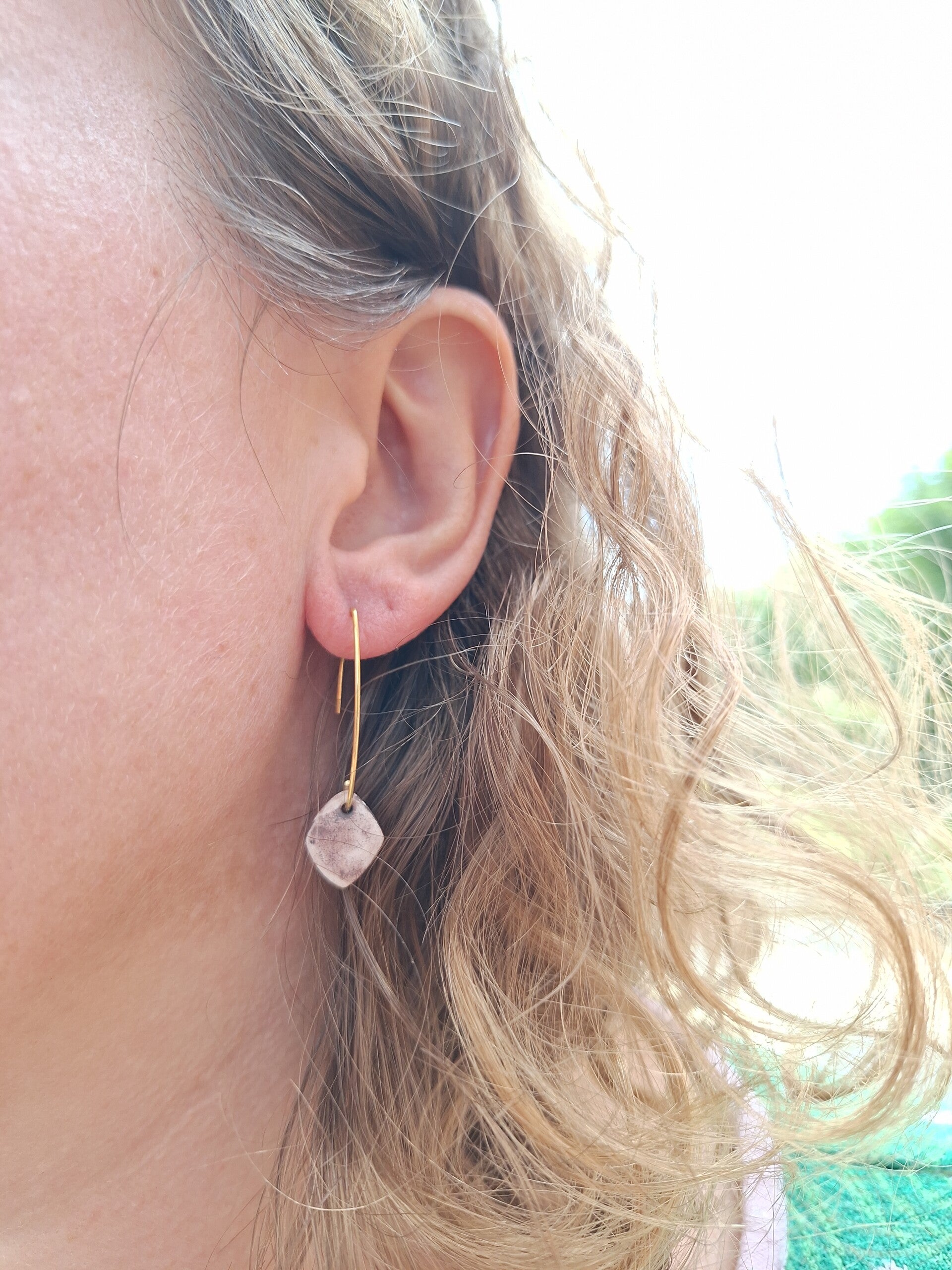 De parels werden door mezelf gemaakt uit ingekleurde porseleinklei. De parels werden gebakken op 1240°C wat ze onbreekbaar maakt bij een gewone val.