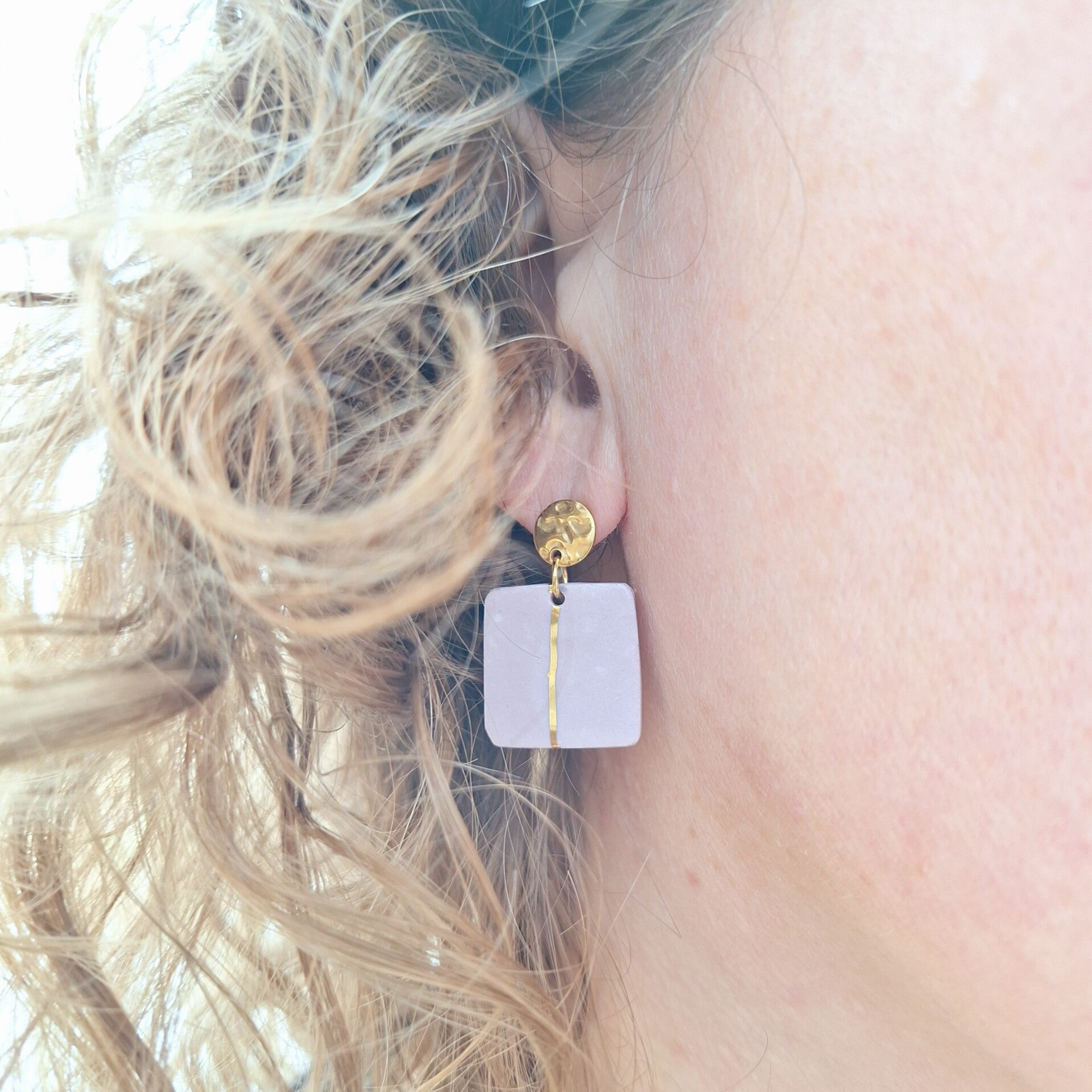 Pastel paars/Roze vierkant parel - goud (Chirurgisch staal)