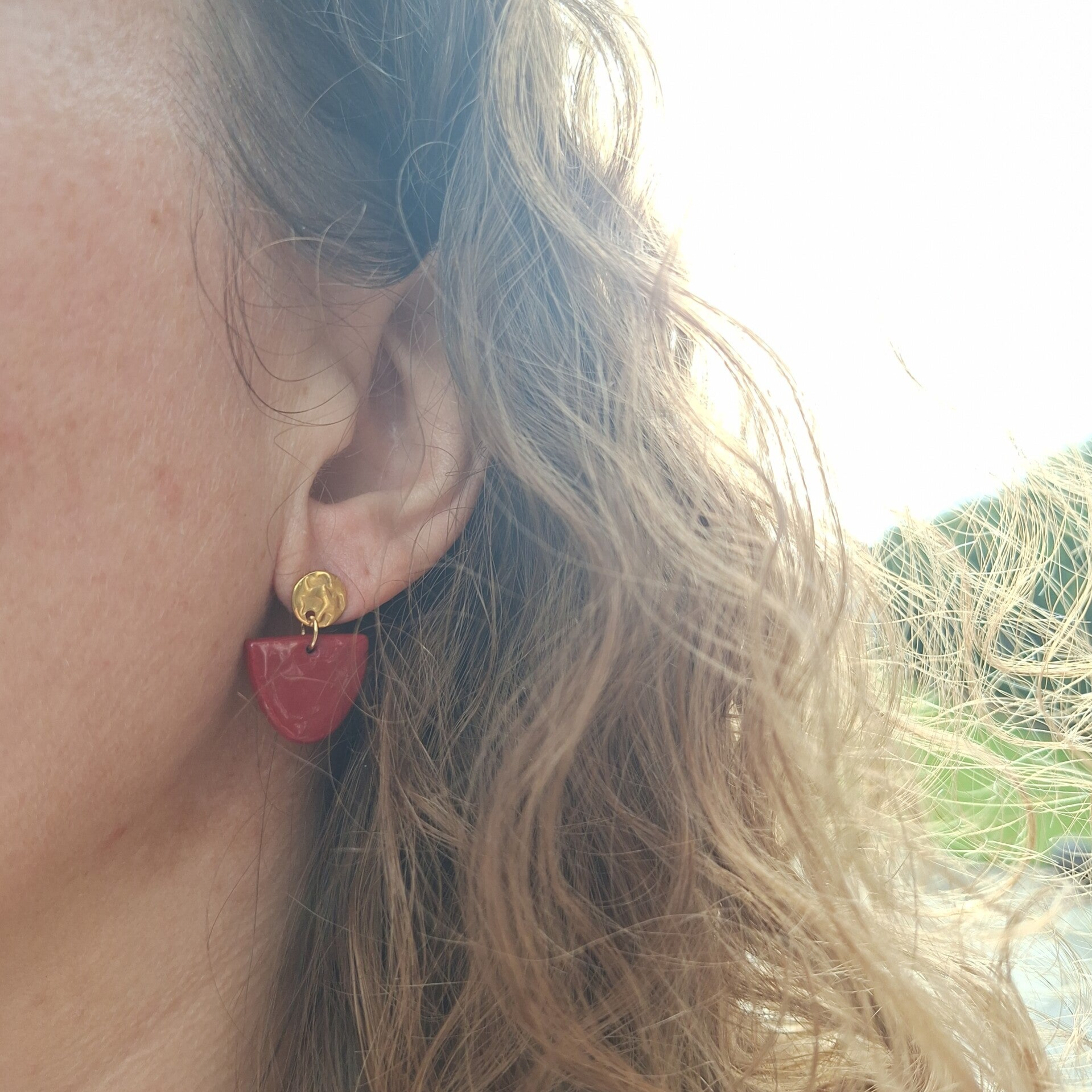 Bordeau rode gouden maanvormige oorbellen - stainless steel