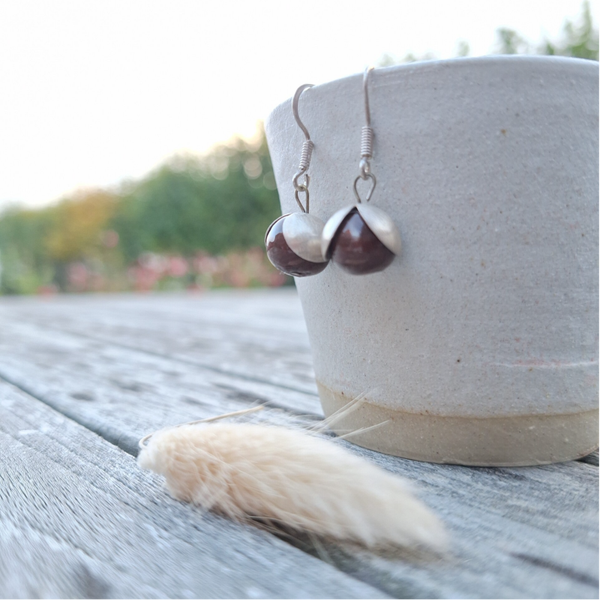 Bruine porseleinparel - zilver (AG925) kapjes en oorhanger