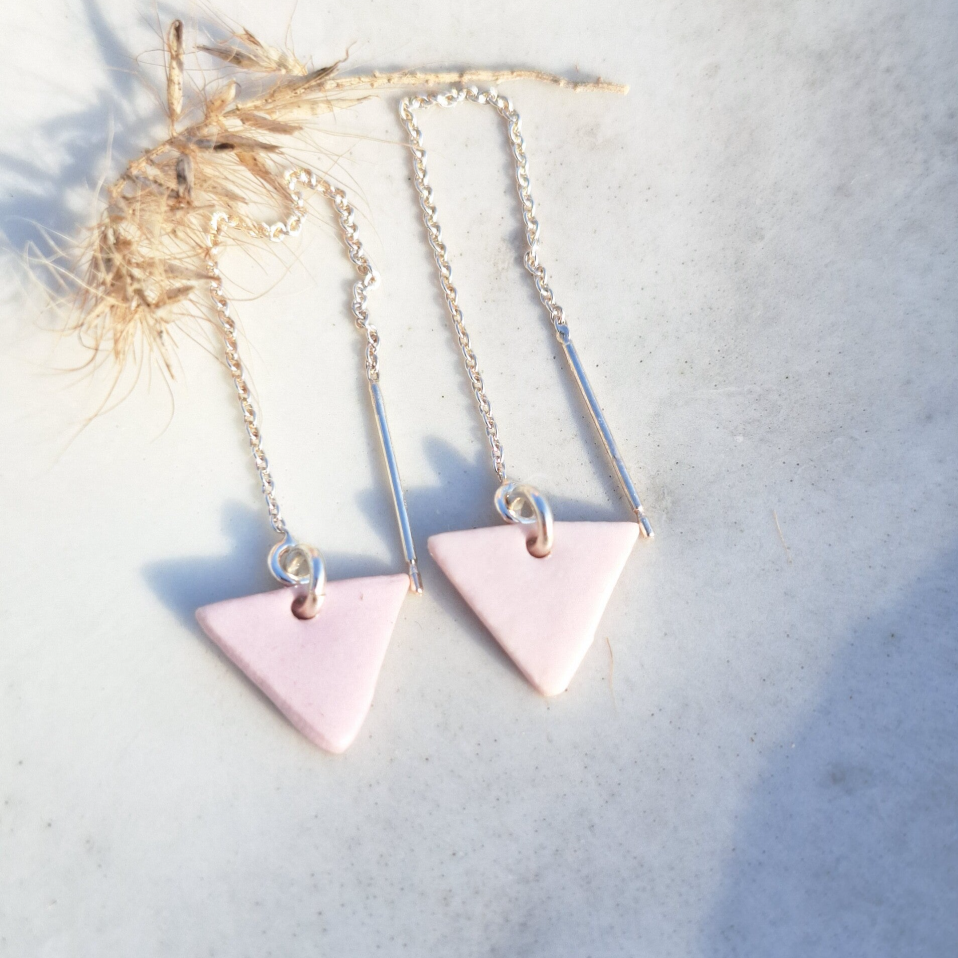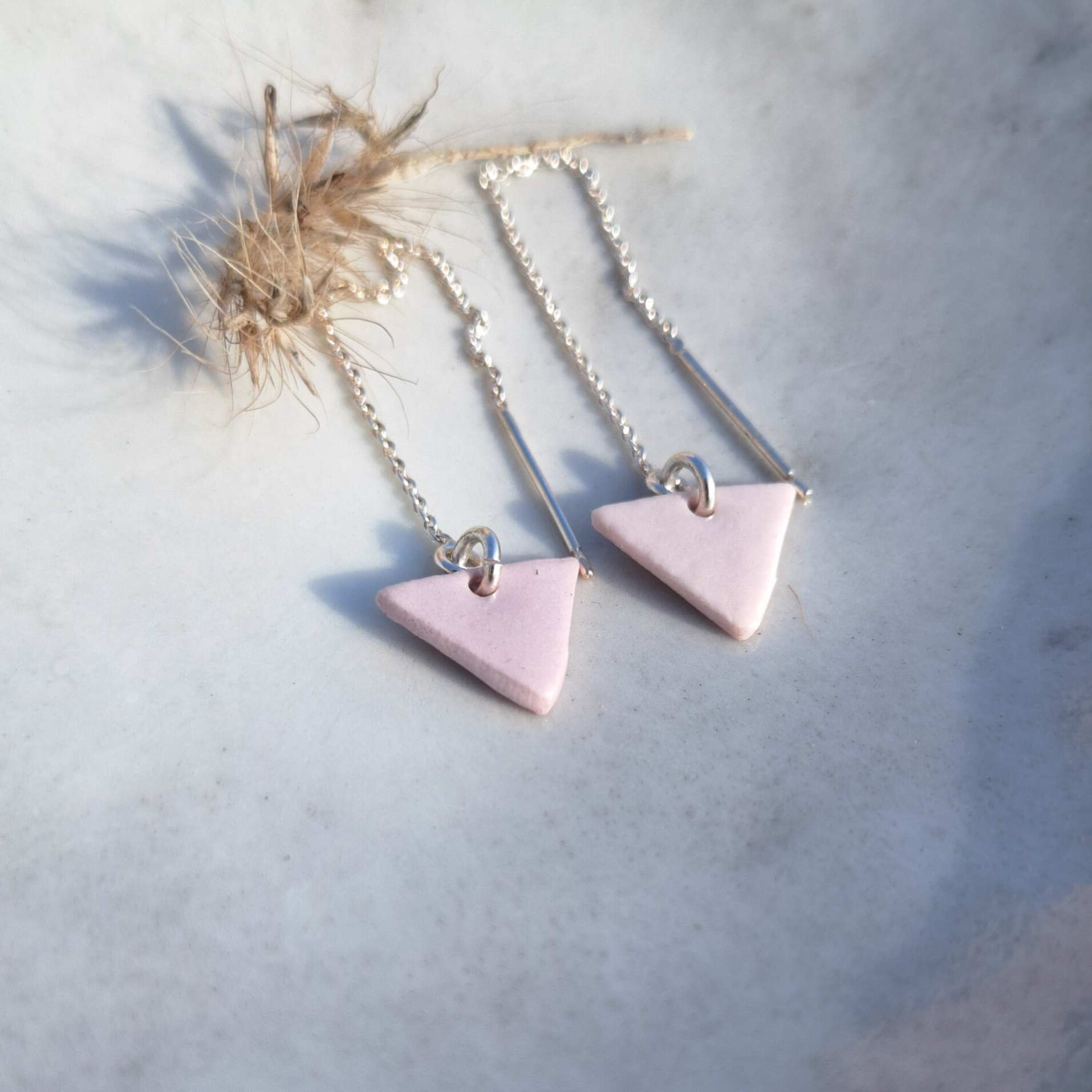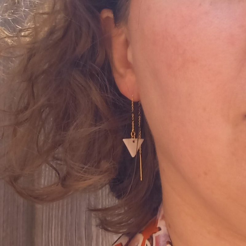 Paars pastel roze driehoek oorbelketting - vermeil goud
